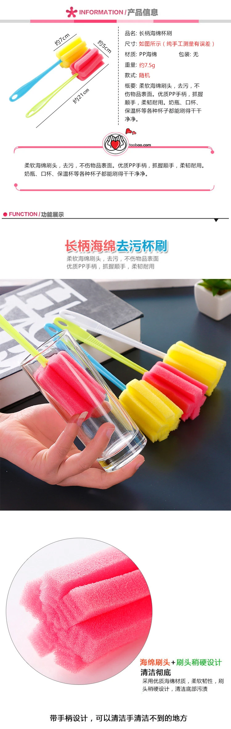 长柄海绵洗杯刷多功能家用洗奶瓶刷水杯刷子双层清洁去污情侣杯刷