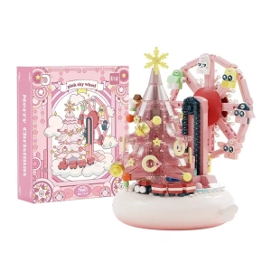 中国积木创意圣诞树摩天轮音乐盒儿童益智拼装玩具节日礼物男女孩